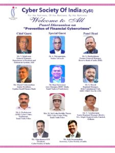 Cyber Society of India (CySI) recently organized a workshop on the “Prevention of Financial Cyber Crimes” on 29th September. The event was a significant success, with 150+ participants in attendance. Experts from Reserve Bank of India (RBI), TamilNādu Police – Cybercrime Police officials, and cyber netizens came together to discuss strategies for preventing financial cyber crimes.